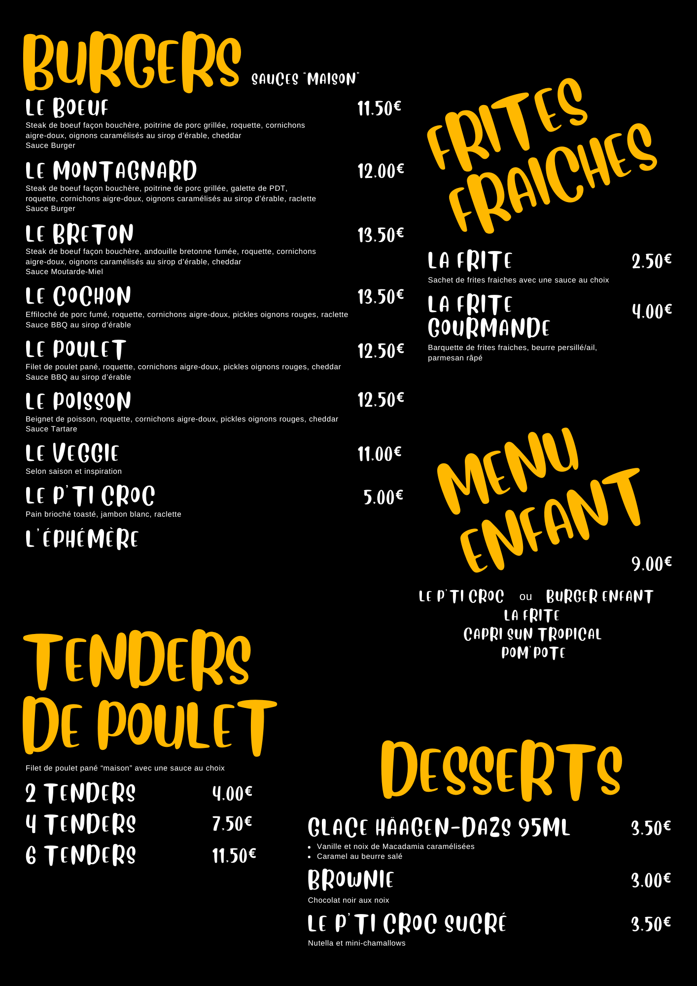 N'oublie pas également de goûter aux frites fraiches ou à te régaler avec les tenders de poulet "maison".